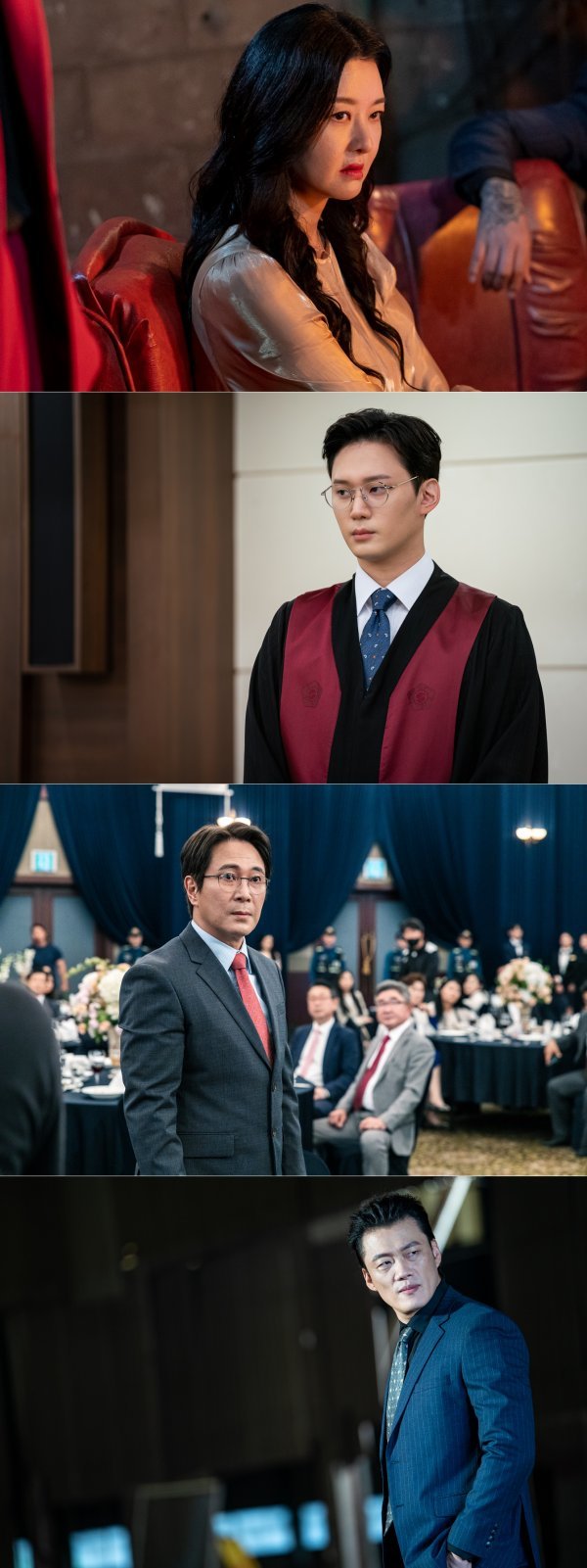 그런 가운데 공개된 사진 속 송선미, 권수현, 조덕현, 이현걸의 독보적인 존재감이 시선을 사로잡는다. 눈빛만으로 상대를 압도하는 송선미는 피도 눈물도 없는 프라이빗 사교 클럽의 대표 ‘박정하’로 분한다. 박정하는 관료와 정치인까지 두루 인맥이 닿아 있는 인물로, 그의 영업 비밀은 베일에 싸여있다. 원하는 것을 위해서라면 수단과 방법을 가리지 않는 그에게 한승민이라는 걸림돌이 생기며 폭주한다. 처세술 좋은 엘리트 검사 ‘차승재’로 분한 권수현의 변신도 흥미롭다. 탄탄대로를 걸어오던 차승재의 유일한 약점은 유희다. 한승민의 살인 자백과 함께 이들 연인과 깊이 얽히며 활약한다.