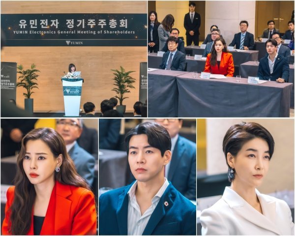특히 조연주와 한승욱이 불안감에 휩싸인 채 초조한 눈빛으로 강은화를 주목하는 반면, 한성혜는 마치 승리한 듯 섬뜩한 미소를 띠며 소름을 유발한다. 과연 유민전자 주주총회장에서 무슨 일이 벌어질지, 조연주가 이번에도 위기를 극복할 수 있을지 주목된다.