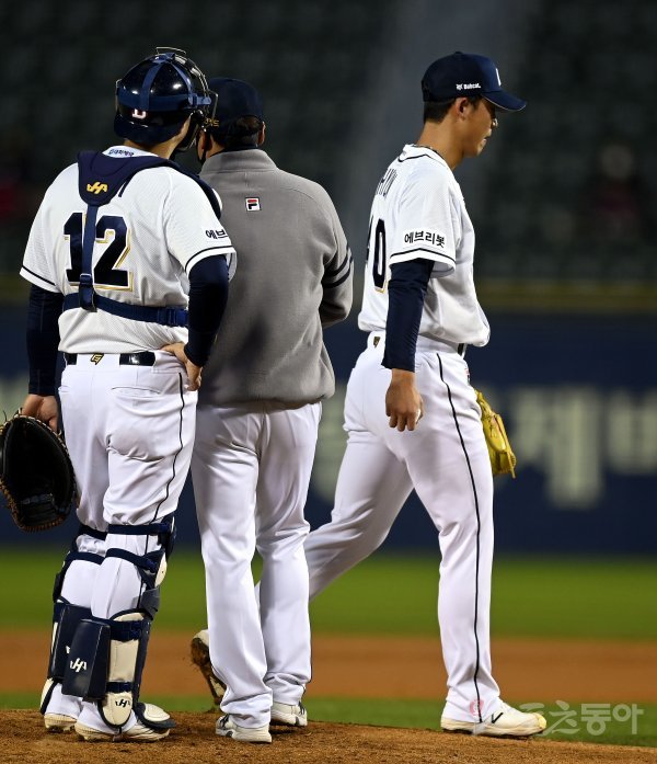 24일 서울 잠실야구장에서 ‘2021 신한은행 SOL KBO리그’ 두산 베어스와 LG 트윈스의 DH 2차전 경기가 열렸다. 1회초 1사 1루에서 두산 선발 현도훈이 교체되고 있다.
