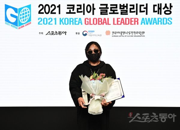 ‘2021 코리아 글로벌리더 대상(주최:스포츠동아, 후원:국립국제교육원, 코리아문화수도조직위원회)’ 시상식이 26일 서울 중구 을지로 서울더존을지타워에서 열렸다. 문화예술 부문 대상을 수상한 예술인 최은하 씨가 기념 촬영을 하고 있다.