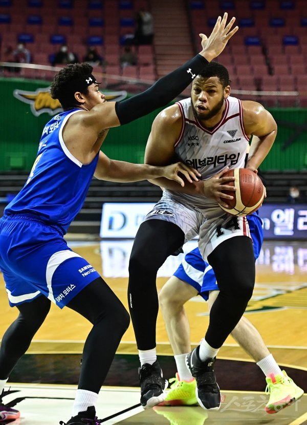 26일 서울 잠실실내체육관에서 열린 ‘2021-2022 KGC 인삼공사 정관장 프로농구’ 서울 삼성과 안양 KGC의 경기에서 KGC 스펠맨이 삼성의 수비를 피해 골밑 돌파를 하고 있다.