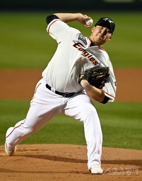 26일 대전 한화생명이글스파크에서 ‘2021 신한은행 SOL KBO리그’ 한화 이글스와 LG 트윈스의 경기가 열렸다. 한화 선발투수 김민우가 힘차게 볼을 던지고 있다.