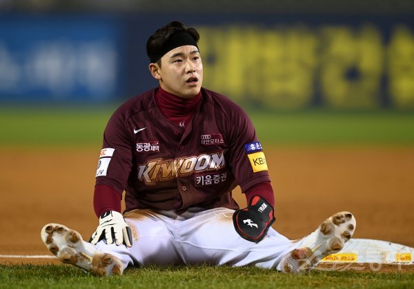 26일 서울 잠실야구장에서 ‘2021 신한은행 SOL KBO리그’ 키움 히어로즈와 두산 베어스 경기가 열렸다. 2회초 2사 1,3루 상황에서 키움 3루주자 김웅빈이 포수 견제사 한 후 아쉬워하고 있다.