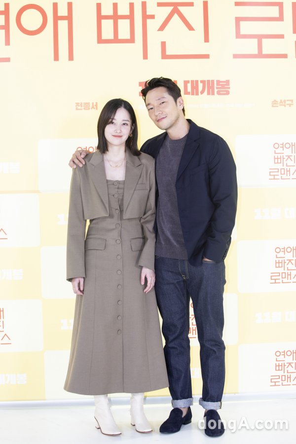 배우 전종서와 손석구가 27일 오전 11시 온라인 생중계로 진행된 영화 ‘연애 빠진 로맨스’ 제작보고회에서 포토타임에 임하고 있다.