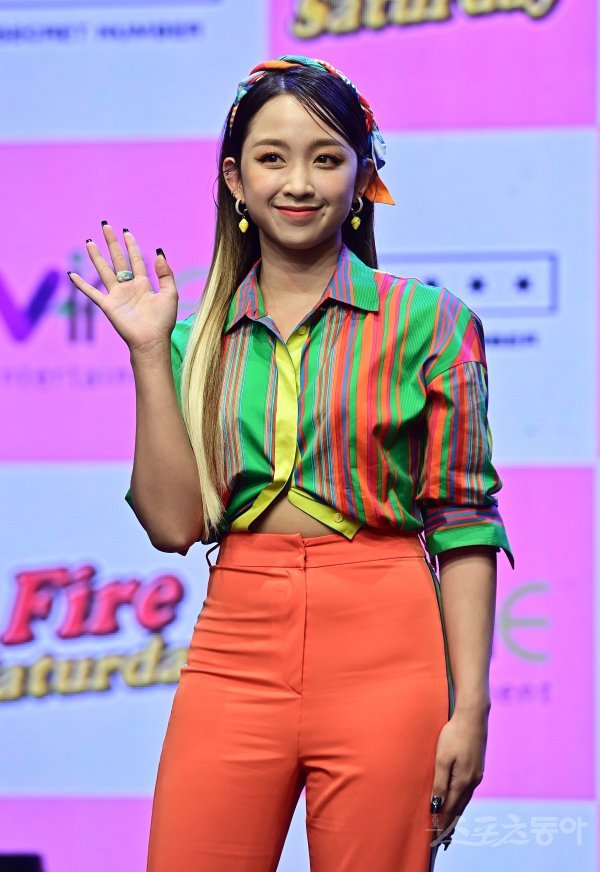 그룹 시크릿넘버 디타가 27일 서울 강남구 청담동 일지아트홀에서 열린 세 번째 싱글 앨범 ‘Fire Saturday‘ 발매 기념 미디오 쇼케이스에서 포즈를 취하고 있다.
