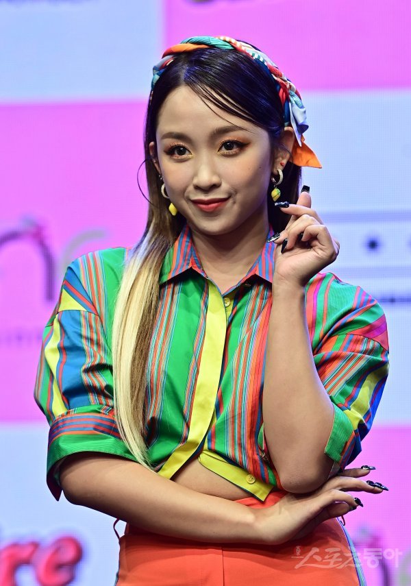 그룹 시크릿넘버 디타가 27일 서울 강남구 청담동 일지아트홀에서 열린 세 번째 싱글 앨범 ‘Fire Saturday‘ 발매 기념 미디오 쇼케이스에서 포즈를 취하고 있다.