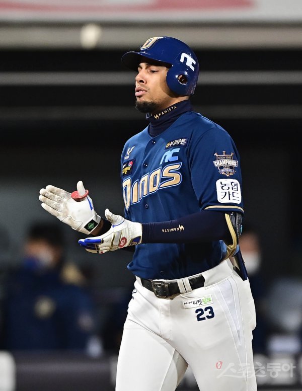 27일 경기도 수원KT위즈파크에서 열린 ‘2021 신한은행 SOL KBO리그’에서 KT 위즈와 NC 다이노스의 경기에서 4회초 2사 1, 3루 NC 알테어가 좌월 3점 홈런을 쳐낸 뒤 세리머니를 하고 있다.