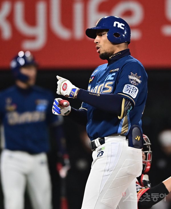 27일 경기도 수원KT위즈파크에서 열린 ‘2021 신한은행 SOL KBO리그’에서 KT 위즈와 NC 다이노스의 경기에서 4회초 2사 1, 3루 NC 알테어가 좌월 3점 홈런을 쳐낸 뒤 세리머니를 하고 있다.