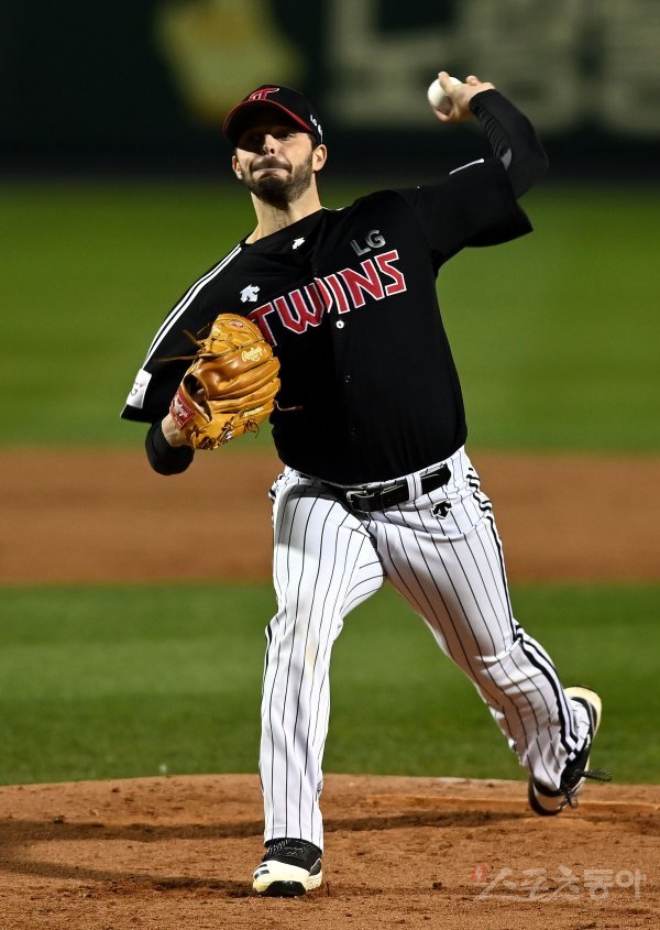 27일 대전 한화생명이글스파크에서 ‘2021 신한은행 SOL KBO리그’ 한화 이글스와 LG 트윈스의 경기가 열렸다. LG 선발투수 수아레즈가 힘차게 볼을 던지고 있다. 대전 | 김민성 기자 marineboy@donga.com