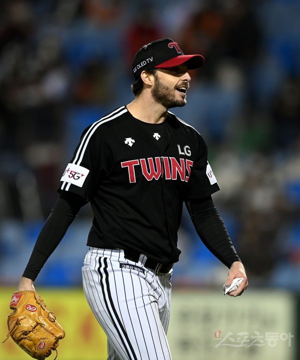 27일 대전 한화생명이글스파크에서 ‘2021 신한은행 SOL KBO리그’ 한화 이글스와 LG 트윈스의 경기가 열렸다. 5회까지 한화 공격을 무실점으로 막은 LG 선발 수아레즈가 이닝 종료 후 더그아웃으로 향하고 있다. 대전 | 김민성 기자 marineboy@donga.com