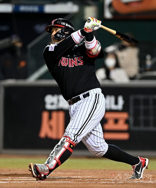 27일 대전 한화생명이글스파크에서 ‘2021 신한은행 SOL KBO리그’ 한화 이글스와 LG 트윈스의 경기가 열렸다. 8회초 1사에서 LG 유강남이 솔로 홈런을 쏘아 올리고 있다.