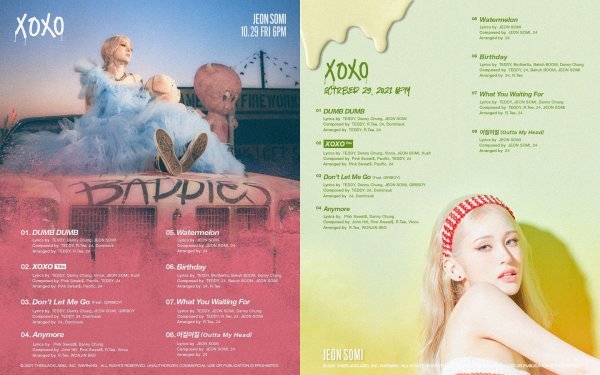 소속사 더블랙레이블은 지난 27일 오후 7시와 28일 0시 공식 SNS를 통해 전소미 첫 번째 정규 앨범 \'XOXO\'의 크레딧 포스터와 다섯 번째 콘셉트 포스터를 순차적으로 오픈했다.