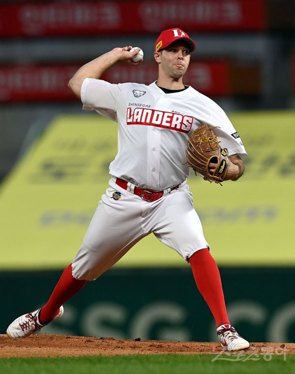 28일 인천 SSG 랜더스필드에서 ‘2021 신한은행 SOL KBO리그’ SSG 랜더스와 두산 베어스의 경기가 열렸다. SSG 선발투수 가빌리오가 힘차게 볼을 던지고 있다.