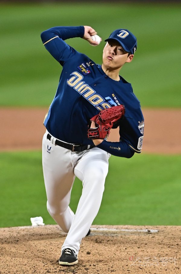 28일 경기도 수원KT위즈파크에서 열린 ‘2021 신한은행 SOL KBO리그’에서 KT 위즈와 NC 다이노스의 더블헤더 2차전 경기에서 선발 투수로 마운드에 오른 NC 김태경이 역투하고 있다.