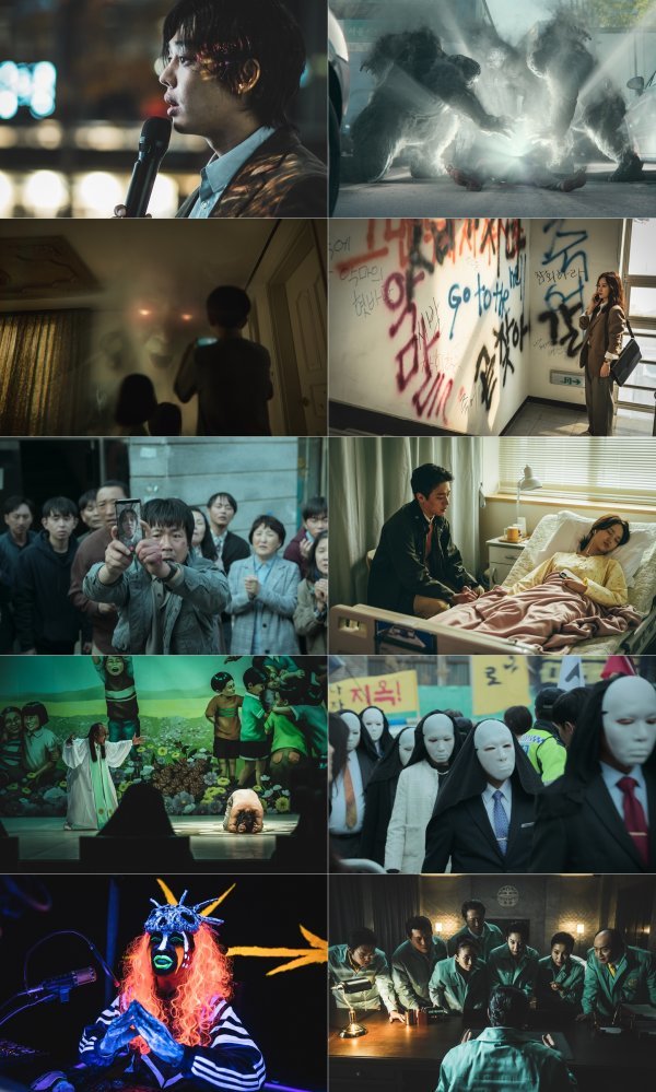 예고없이 등장한 지옥의 사자들에게 사람들이 지옥행 선고를 받는 초자연적인 현상이 발생하고, 이 혼란을 틈타 부흥한 종교단체 새진리회와 사건의 실체를 밝히려는 이들이 얽히면서 벌어지는 이야기를 그린 넷플릭스 시리즈 ‘지옥’이 보도 스틸을 공개했다.