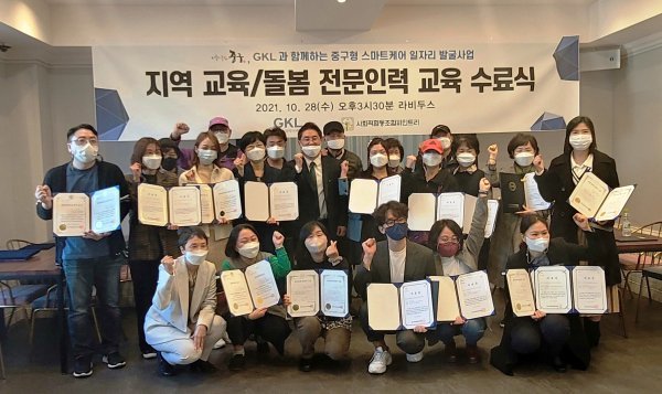 게이밍 공기업 그랜드코리아레저(GKL)는 서울 중구청과 진행한 ‘중구형 스마트케어 일자리 발굴 사업’의 수료식을 28일 진행했다.2개월 교육 거쳐 26명 지역사회서비스 전문인력 양성