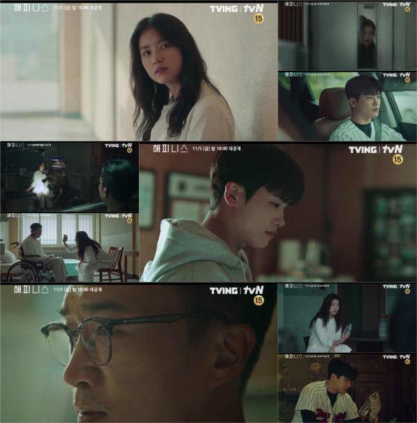 한편, ‘해피니스’는 ‘청춘기록’ ‘WATCHER(왓쳐)’ ‘알함브라 궁전의 추억’ ‘비밀의 숲’ 등 장르를 불문하고 세밀한 연출의 힘을 보여준 안길호 감독과 ‘WATCHER(왓쳐)’ ‘굿와이프’를 집필한 한상운 작가가 의기투합해 색다른 차원의 도시 스릴러를 완성한다. 11월 5일 밤 10시 40분 티빙과 tvN에서 공개된다.