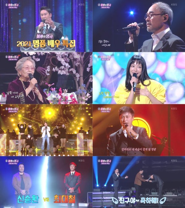 지난 30일 방송된 KBS2‘불후의 명곡’(연출 박형근)529회는 ‘2021명품배우특집’으로 펼쳐졌다. 스페셜 MC 이찬원의 맛깔 난 진행이 더해진 이날 방송은 배우 김영옥, 강신일, 김승수, 최대철, 신승환, 신소율 등 6인 명품 배우들의 치열한 대결이 펼쳐져 손에 땀을 쥐게 했다.