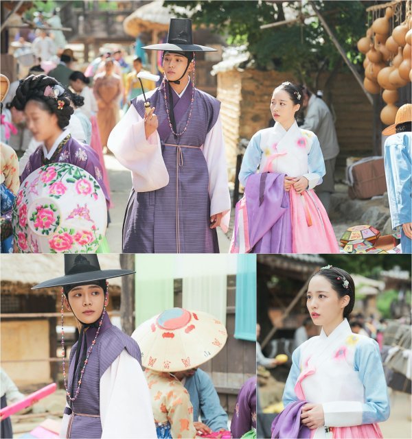 그 가운데, 오늘(31일) 공개된 스틸 컷은 문제의 씨앗이 된 지운과 소은이 저잣거리에서 우연히 마주친 순간을 담아 호기심을 증폭시킨다. 다행히 위기를 모면한 듯, 지운은 여유를 되찾으며 거리를 활보하고 있는 반면, 소은은 안절부절 그의 눈치를 살피며 잔뜩 긴장했다. ‘신소은’ 이름 석 자를 기억해달라며 당차게 자신의 존재를 각인시킨 때와는 달리, 미안한 마음에 설레는 가슴까지 더해 어느새 좋아하는 남자 앞에서 어쩔 줄 모르는 소녀의 모습만이 남았다.