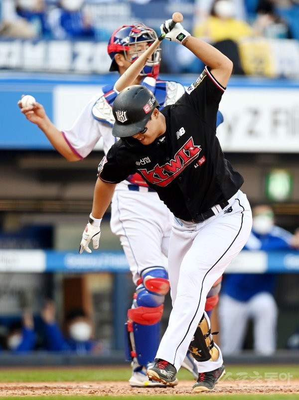 31일 대구 삼성라이온즈파크에서 ‘2021 신한은행 SOL KBO리그’ 삼성 라이온즈와 kt 위즈가 정규리그 1위를 결정짓는 타이브레이커 경기가 열렸다. 4회초 1사 1루에서 kt 강백호가 삼진 아웃으로 물러나며 배트에 화풀이하고 있다. 대구 | 김민성 기자 marineboy@donga.com