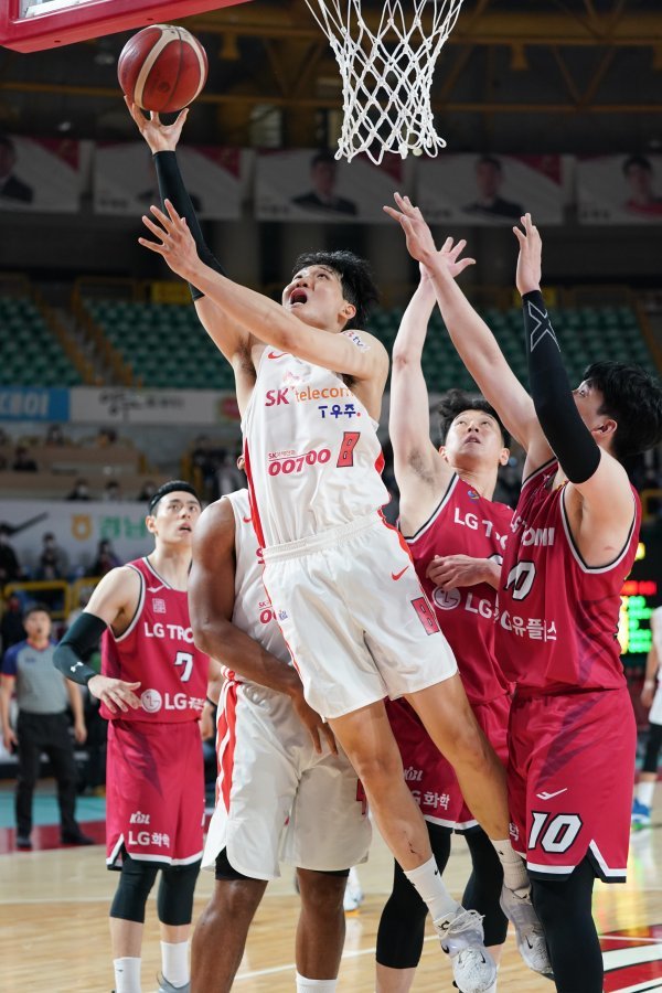 SK는 전반 내내 단 하나의 3점슛도 성공하지 못하며 어려움을 겪었다. 5개의 3점슛을 터트린 LG에 28-31로 뒤진 채 전반을 마쳤다. LG 주포 아셈 마레이를 2점으로 묶었지만, 이관희(29점)와 이재도(17점·5어시스트)에서 파생되는 공격에 어려움을 겪었다.