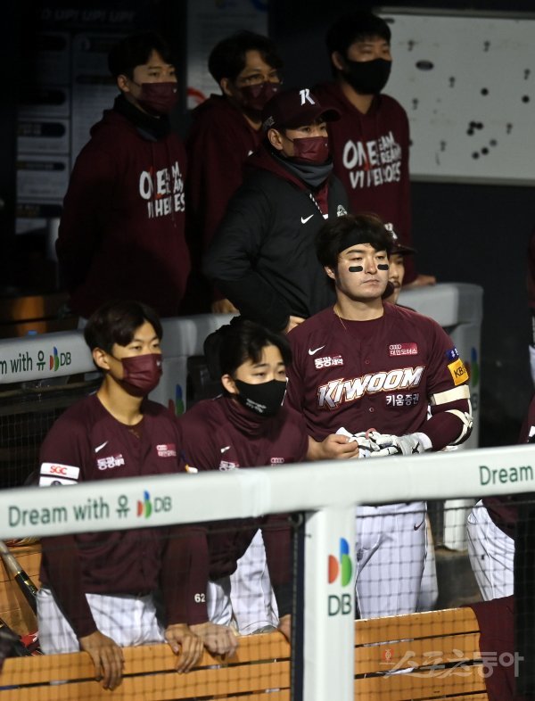 2일 서울 잠실야구장에서 ‘2021 신한은행 SOL KBO리그’ 와일드카드 결정전 2차전 키움 히어로즈와 두산 베어스 경기가 열렸다. 4-15로 크게 지고있는 상황에서 키움 박병호가 7회초 공격을 바라보고 있다.