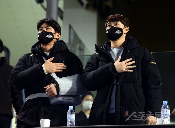 이들은 팀 훈련을 전후로 라커룸에 머물며 동료들을 격려한 뒤 관중석으로 이동해 선전을 응원했다. 구단에서도 경기 개시 직전 전광판에 이들의 영상을 띄우며 쾌유와 격려를 빌었다. 함성을 지를 수 없는 팬들도 열띤 박수를 보냈다. 어떤 시구행사보다 의미 있는 장면이었다.