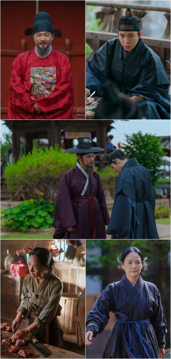 그런 가운데 공개된 사진 속 묵직한 존재감을 발산하는 배우들의 존재가 흥미를 유발한다. 먼저, 사대부가 실권을 쥔 탐관오리의 중심 ‘박승’으로 분한 정보석의 온도 차가 시선을 강탈한다. 인자한 미소의 박승은 얼핏 보기엔 둘도 없는 충신처럼 보인다. 하지만 그의 얼굴은 아들 박태서(이재균 분)와 마주한 순간 차갑게 반전된다. 자식을 바라보는 박승의 시선이 이토록 비정한 이유는 그가 서자이기 때문. 아버지의 인정을 받고 싶어 뭐든지 하는 서자 박태서와 이를 교묘하게 이용하는 박승. 이들 부자는 수사단과 대립각을 세우며 극에 텐션을 더한다. 비뚤어진 가족사를 가진 이들의 관계 변화를 쫄깃하게 그려나갈 정보석, 이재균의 시너지도 기대를 높인다.