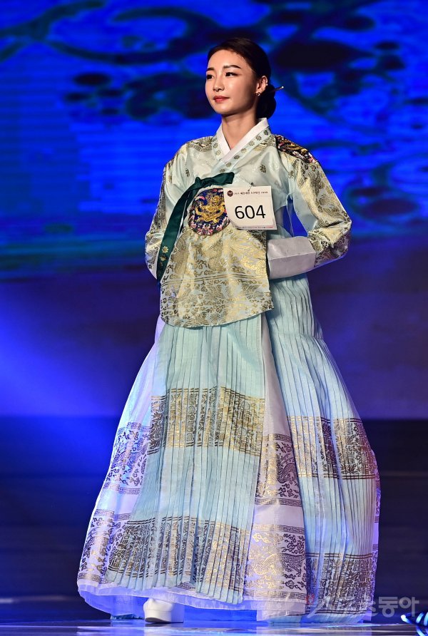 7일 서울 광진구 광장동 비스타워커힐 서울에서 열린 ‘2021 세종대왕 소헌왕후’ 선발대회에서 송아리 부문 여자 604번 이예진이 워킹 퍼포먼스를 하고 있다. ‘세종대왕 소헌왕후 선발대회’는 우리 역사상 가장 위대한 성군인 세종대왕을 널리 알리고 업적을 계승, 발전시키기 위해 개최한 대회이다. 본 대회 수상자들은 대한민국 홍보대사로서 활동하게 되며, 한글의 우수성과 한복의 아름다움, 한식의 세계화 및 한류 문화를 전세계에 알리는 한복 모델로 활동하게 된다.