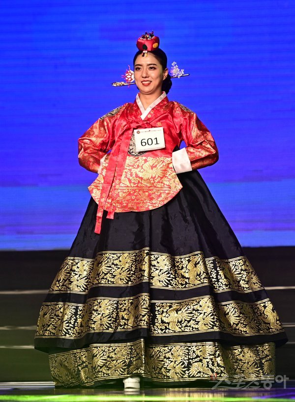 7일 서울 광진구 광장동 비스타워커힐 서울에서 열린 ‘2021 세종대왕 소헌왕후’ 선발대회에서 송아리 부문 여자 601번 우지영이 워킹 퍼포먼스를 하고 있다. ‘세종대왕 소헌왕후 선발대회’는 우리 역사상 가장 위대한 성군인 세종대왕을 널리 알리고 업적을 계승, 발전시키기 위해 개최한 대회이다. 본 대회 수상자들은 대한민국 홍보대사로서 활동하게 되며, 한글의 우수성과 한복의 아름다움, 한식의 세계화 및 한류 문화를 전세계에 알리는 한복 모델로 활동하게 된다.
