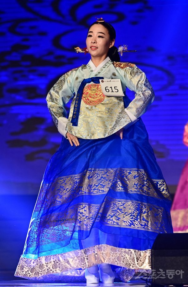 7일 서울 광진구 광장동 비스타워커힐 서울에서 열린 ‘2021 세종대왕 소헌왕후’ 선발대회에서 송아리 부문 여자 615번 김진영이 워킹 퍼포먼스를 하고 있다. ‘세종대왕 소헌왕후 선발대회’는 우리 역사상 가장 위대한 성군인 세종대왕을 널리 알리고 업적을 계승, 발전시키기 위해 개최한 대회이다. 본 대회 수상자들은 대한민국 홍보대사로서 활동하게 되며, 한글의 우수성과 한복의 아름다움, 한식의 세계화 및 한류 문화를 전세계에 알리는 한복 모델로 활동하게 된다.