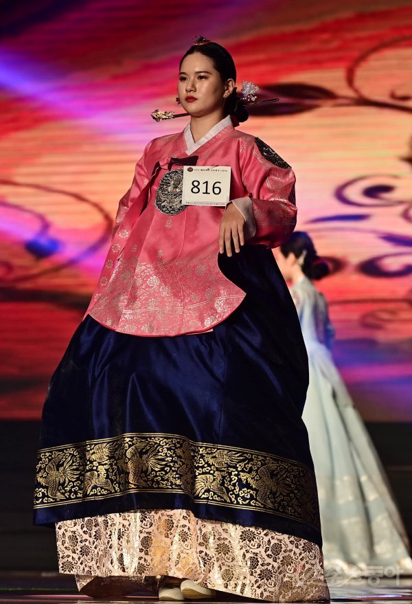 7일 서울 광진구 광장동 비스타워커힐 서울에서 열린 ‘2021 세종대왕 소헌왕후’ 선발대회에서 소헌왕후 부문 816번 이윤현이 워킹 퍼포먼스를 하고 있다. ‘세종대왕 소헌왕후 선발대회’는 우리 역사상 가장 위대한 성군인 세종대왕을 널리 알리고 업적을 계승, 발전시키기 위해 개최한 대회이다. 본 대회 수상자들은 대한민국 홍보대사로서 활동하게 되며, 한글의 우수성과 한복의 아름다움, 한식의 세계화 및 한류 문화를 전세계에 알리는 한복 모델로 활동하게 된다.