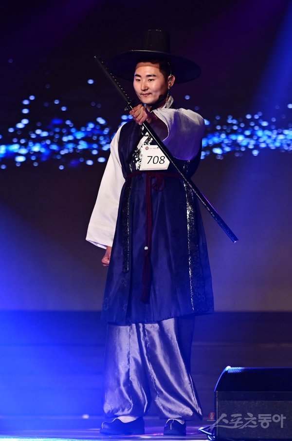 7일 서울 광진구 광장동 비스타워커힐 서울에서 열린 ‘2021 세종대왕 소헌왕후’ 선발대회에서 세종대왕 부문 708번 최진호가 워킹 퍼포먼스를 하고 있다. ‘세종대왕 소헌왕후 선발대회’는 우리 역사상 가장 위대한 성군인 세종대왕을 널리 알리고 업적을 계승, 발전시키기 위해 개최한 대회이다. 본 대회 수상자들은 대한민국 홍보대사로서 활동하게 되며, 한글의 우수성과 한복의 아름다움, 한식의 세계화 및 한류 문화를 전세계에 알리는 한복 모델로 활동하게 된다.