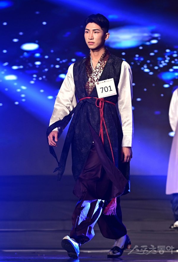 7일 서울 광진구 광장동 비스타워커힐 서울에서 열린 ‘2021 세종대왕 소헌왕후’ 선발대회에서 세종대왕 부문 701번 성우진이 워킹 퍼포먼스를 하고 있다. ‘세종대왕 소헌왕후 선발대회’는 우리 역사상 가장 위대한 성군인 세종대왕을 널리 알리고 업적을 계승, 발전시키기 위해 개최한 대회이다. 본 대회 수상자들은 대한민국 홍보대사로서 활동하게 되며, 한글의 우수성과 한복의 아름다움, 한식의 세계화 및 한류 문화를 전세계에 알리는 한복 모델로 활동하게 된다.