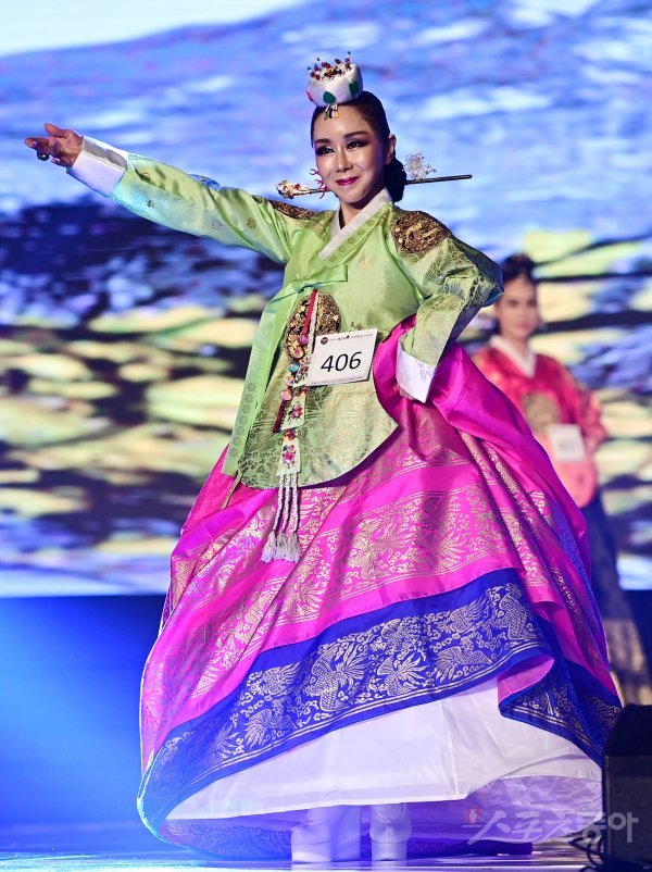 7일 서울 광진구 광장동 비스타워커힐 서울에서 열린 ‘2021 세종대왕 소헌왕후’ 선발대회에서 모도리 부문 여자 406번 이정본이 워킹 퍼포먼스를 하고 있다. ‘세종대왕 소헌왕후 선발대회’는 우리 역사상 가장 위대한 성군인 세종대왕을 널리 알리고 업적을 계승, 발전시키기 위해 개최한 대회이다. 본 대회 수상자들은 대한민국 홍보대사로서 활동하게 되며, 한글의 우수성과 한복의 아름다움, 한식의 세계화 및 한류 문화를 전세계에 알리는 한복 모델로 활동하게 된다.