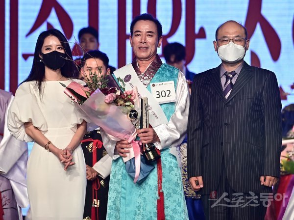 7일 서울 광진구 광장동 비스타워커힐 서울에서 열린 ‘2021 세종대왕 소헌왕후’ 선발대회에서 모도리 덕을 수상한 김태주가 2020 송아리 진 고서연(왼쪽)과 김호성 심사위원장(오른쪽)과 기념 촬영을 하고 있다. ‘세종대왕 소헌왕후 선발대회’는 우리 역사상 가장 위대한 성군인 세종대왕을 널리 알리고 업적을 계승, 발전시키기 위해 개최한 대회이다. 본 대회 수상자들은 대한민국 홍보대사로서 활동하게 되며, 한글의 우수성과 한복의 아름다움, 한식의 세계화 및 한류 문화를 전세계에 알리는 한복 모델로 활동하게 된다.