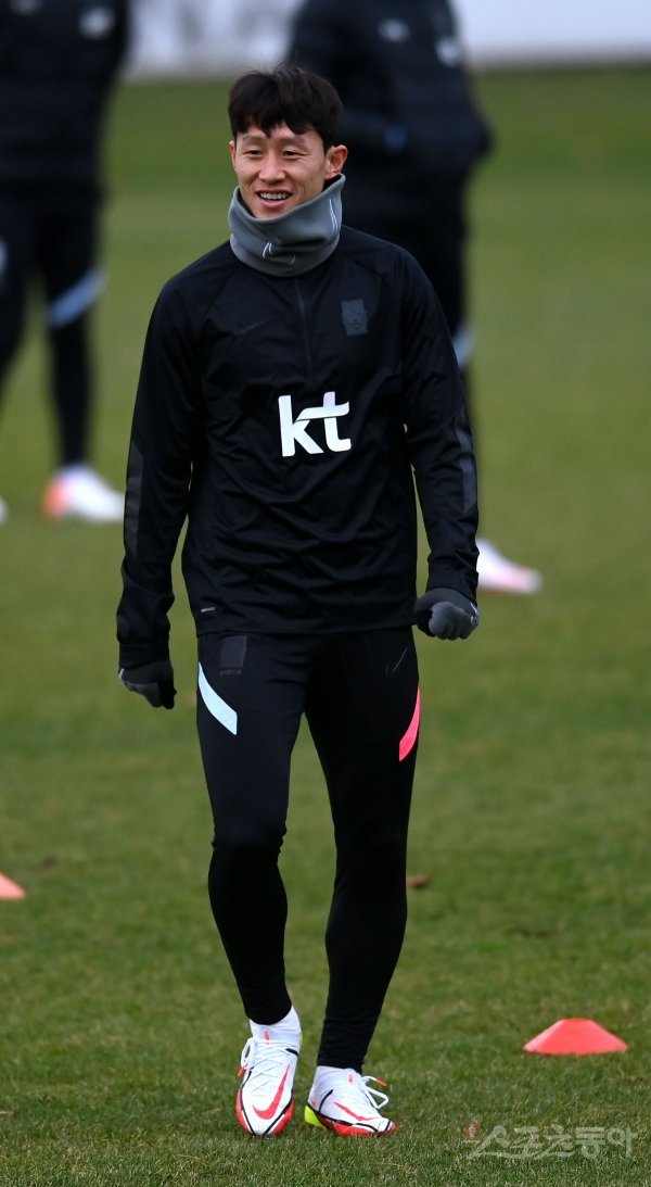 아랍에미리트(UAE)와 11일 2022 FIFA 카타르 월드컵 아시아 최종예선 A그룹 5라운드 경기를 가질 한국 축구대표팀이 9일 파주NFC(국가대표 축구트레이닝센터)에서 훈련을 가졌다. 이재성이 훈련 중 웃고 있다.