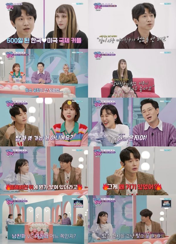 이날 '벼랑 끝 커플'에 사연을 보낸 주인공은 한국인 남자친구와 미국인 여자친구로 이뤄진 국제 커플이었다. 6개월째 동거 중이라는 이들이 금이 간 이유는 다름 아닌 청소였다. 남자친구는 "여자친구가 청소를 안 해서", 여자친구는 "남자친구가 청소 기준이 높아서"라며 쌍방 고민을 신청한 것. 극과 극에 있는 둘의 입장에 MC들은 그 어느 때보다 골머리를 앓았다.