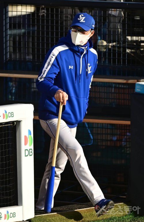 10일 서울 잠실야구장에서 열린 ‘2021 신한은행 SOL KBO리그’ 포스트시즌 플레이오프 2차전 두산 베어스와 삼성 라이온즈의 경기에 앞서 삼성 허삼영 감독이 그라운드에 들어서고 있다. 잠실 | 주현희 기자 teth1147@donga.com
