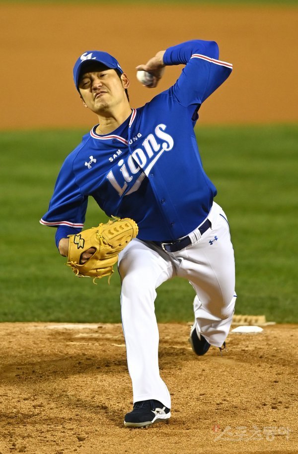 10일 서울 잠실야구장에서 ‘2021 신한은행 SOL KBO리그’ 플레이오프 2차전 삼성 라이온즈와 두산 베어스 경기가 열렸다. 선발 투수로 등판한 삼성 백정현이 역투하고 있다.