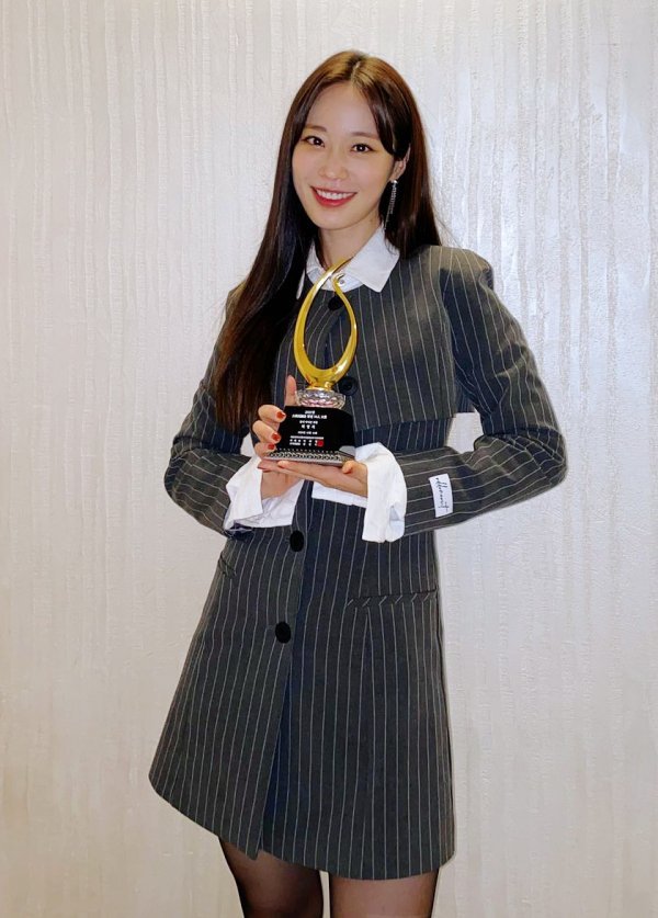 가수 겸 배우 허영지가 '2021 대한민국을 빛낸 10인 대상'에서 뷰티 아이콘 부문을 수상했다.