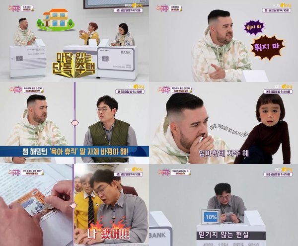 이날 샘 해밍턴은 "돈 관리는 한국에 있는 건 와이프가, 호주에 있는 건 내가 한다"라며 "내 집으로 단독주택을 마련하는 게 꿈이다. 아파트에 살면서 아이들한테 '뛰지 마'라고 말하는 게 미안했다"라고 출연 이유를 설명했다.