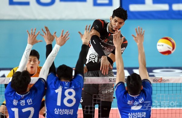 이번 시즌 OK금융그룹에 입단하며 V리그에 복귀한 레오는 이날 경기 전까지 경기당 30득점, 공격성공률(55.85%) 3위 등 여전히 위력적인 활약을 펼치고 있다. 삼상화재를 상대로도 레오의 파괴력이 빛났다. 1세트부터 9점을 올리며 팀 공격을 주도한 그는 2, 3세트에도 꾸준히 득점을 하며 팀의 역전을 이뤄냈다. 4세트 들어 다소 부진했지만, 마지막 5세트에서만 8점을 쓸어 담으며 승리에 앞장섰다.