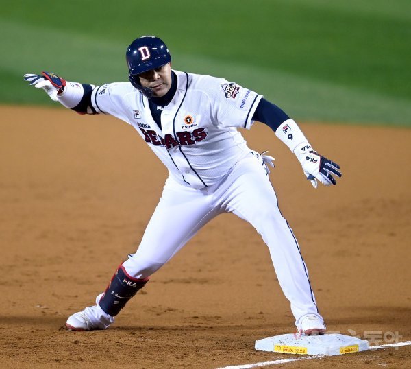 와일드카드(WC) 결정전부터 한국시리즈(KS·7전4승제) 2차전까지 보름. 타격에 사이클이 있다고 한다면, 한창 달아올랐다 식어도 이상하지 않은 기간이다. 여기에 정규시즌 몇 배의 피로도가 더해지는 포스트시즌(PS) 무대임을 고려하면 더더욱 그렇다. 하지만 호세 미구엘 페르난데스(33·두산 베어스)의 방망이는 식을 줄 모른다. 어느새 단일 PS 톱7에 진입했다. ‘500%’의 페르난데스는 이 가을을 이대로 끝내고 싶지 않다.