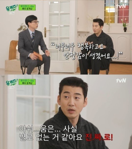 또 조세호가 “‘유퀴즈’ 출연에 아내분의 반응은 어땠나”라고 묻자, 윤계상은 “아내가 ‘유퀴즈 진짜 팬이다. ”진짜 오빠가 나가? 거기?“라고 하더라”라고 말했다.