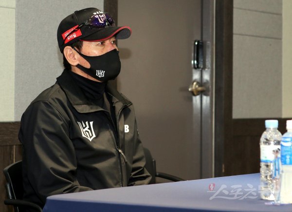 17일 서울 고척스카이돔에서 ‘2021 신한은행 SOL KBO리그‘ KT 위즈와 두산 베어스의 한국시리즈 3차전 경기가 열린다. kt 이강철 감독이 인터뷰를 하고 있다. 고척 | 김민성 기자 marineboy@donga.com