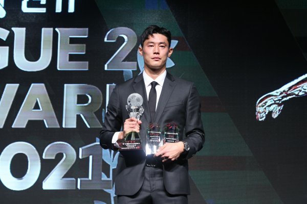 올 시즌 K리그2에서 최고의 활약을 펼친 선수들의 면면이 18일 서울 마포구 누리꿈스퀘어에서 열린 ‘하나원큐 K리그2 2021 대상 시상식’을 통해 공개됐다. MVP, 영플레이어상, 감독상, 최다득점상, 도움상 등의 개인상 수상자와 베스트11이 발표됐다.
