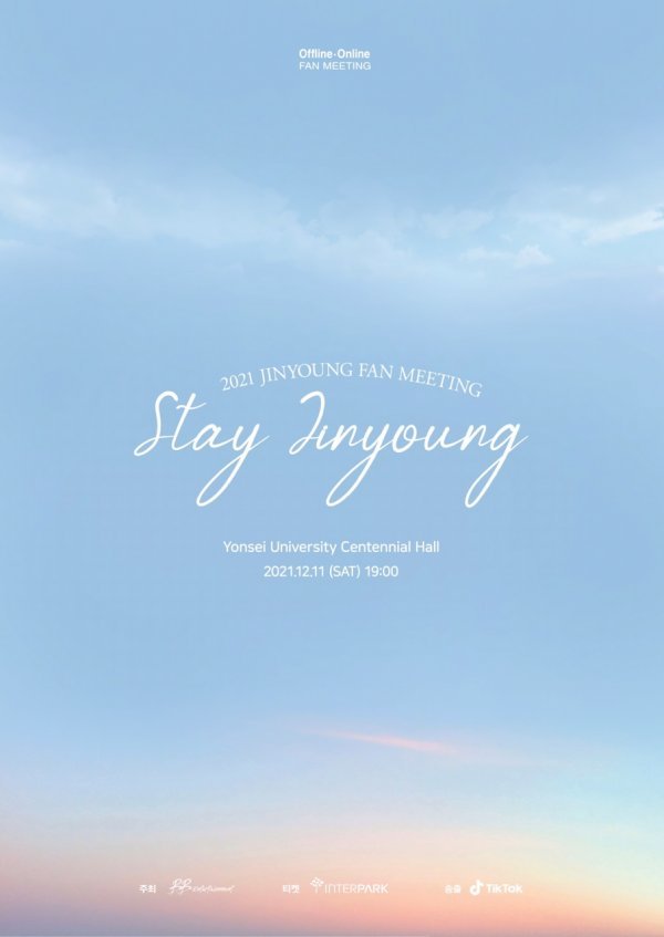 소속사 비비엔터테인먼트는 "진영이 오는 12월 11일 연세대학교 백주년기념관 콘서트홀에서 ’2021 JINYOUNG FAN MEETING [Stay, Jinyoung]‘을 통해 전세계 팬들과 만난다"고 밝혔다.