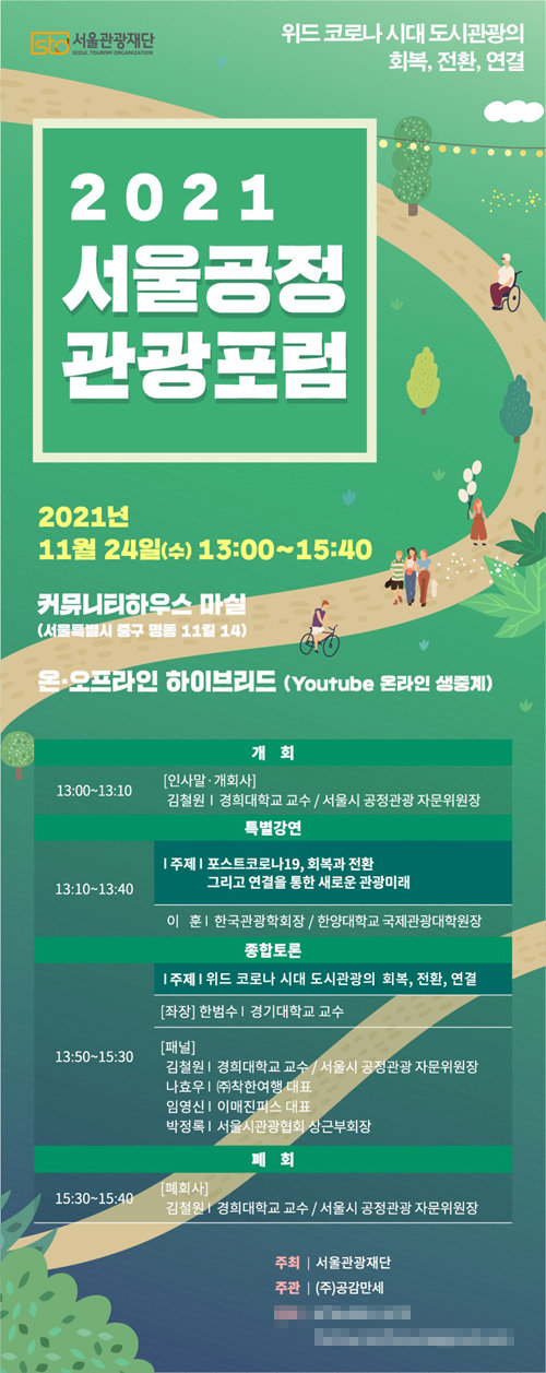 포럼은 사회적 거리두기 방침에 따라 최소 인원만 참석하고, 서울관광재단 유튜브 채널에서 온라인 생중계한다.