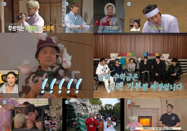 ‘무지개 달력’ 촬영의 대미는 박나래가 장식했다. 12월의 콘셉트에 맞게 어린시절 추억의 영화인 ‘나 홀로 집에’를 완벽 소환했다. 키가 ‘케빈’으로, 박나래가 금니를 반짝이는 좀도둑으로 분했다. 성훈은 키 큰 좀도둑으로, 기안84와 화사는 각각 트리와 눈사람으로 분장했다.
